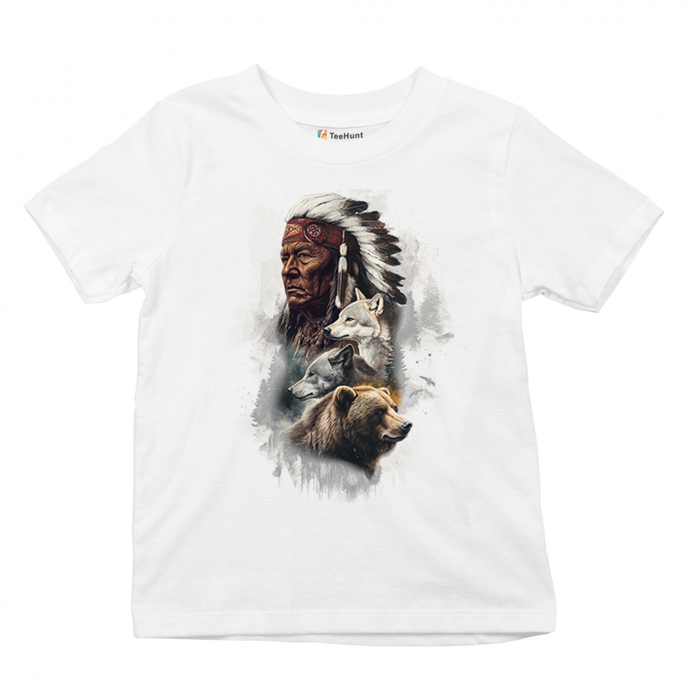 Celebrate spiritual strength and heritage with this design featuring a Native American elder alongside wolves and a bear. This tribal and totemic art reflects wisdom, guardianship, and deep forest spirit energy. Perfect for cultural pride, animal lovers, and those connected to spiritual symbolism in nature.