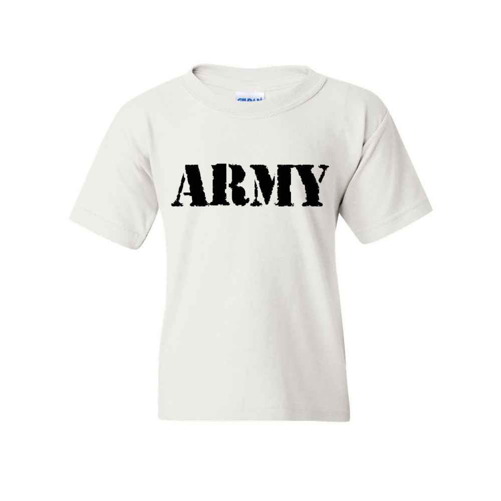 ARMY BLACK army youth t-shirt military veteran pow mia patriotic veteran's day kids tee white