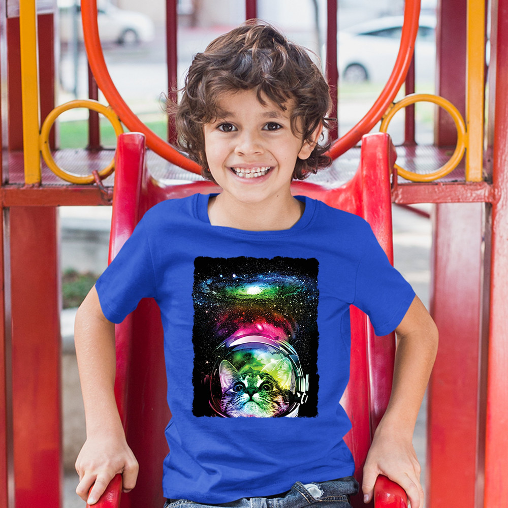 ASTRONAUT CAT youth t-shirt space kitty kids royal blue