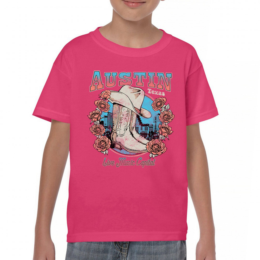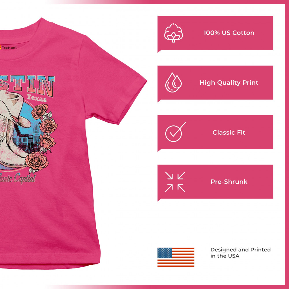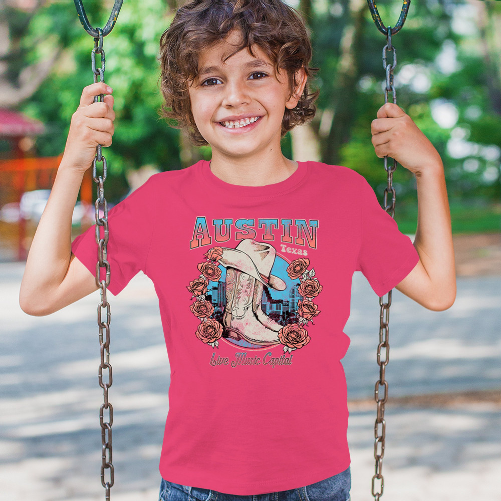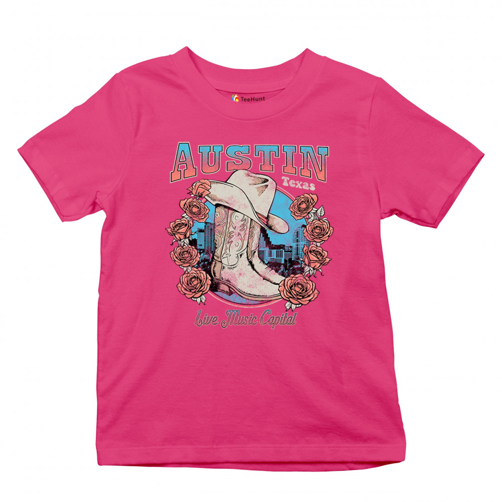 Austin TX Live Music Capital comes alive in this vintage cowgirl boots and hat design, accented by roses and the city skyline. Perfect for lovers of country music, honkytonk vibes, and western chic, this design embodies southern spirit, rustic grit, and the proud Americana aesthetic of Texas’ iconic music scene.