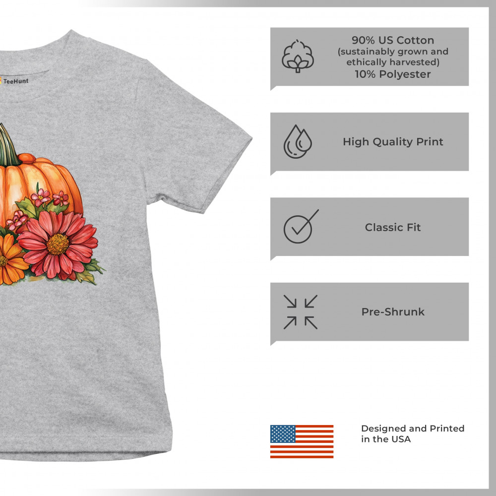 Celebrate autumn with our charming pumpkin and floral design. Perfect for seasonal decor, gifts, and showcasing your fall spirit. Ideal for Thanksgiving!