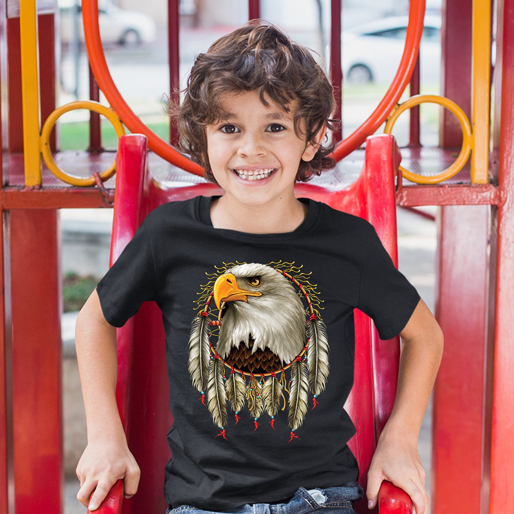 BALD EAGLE DREAMCATCHER youth t-shirt indigenous native american heritage kids black