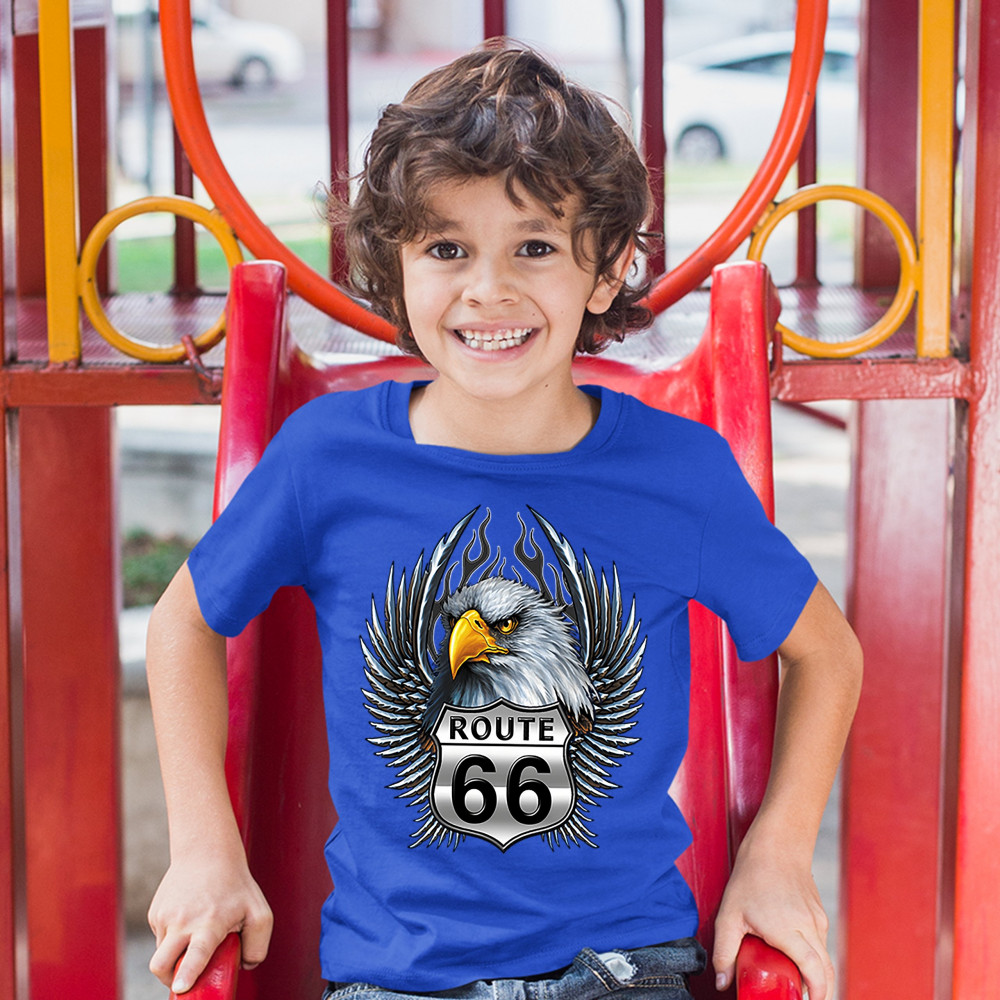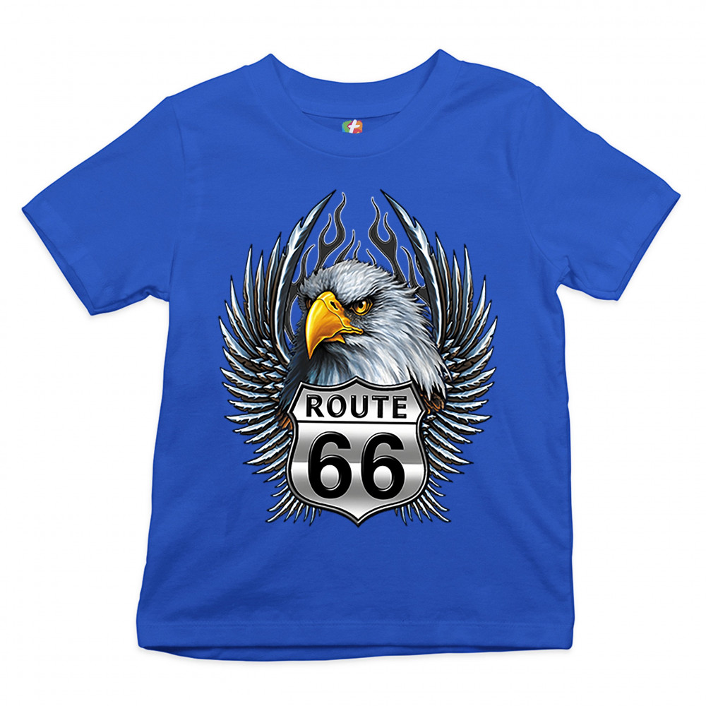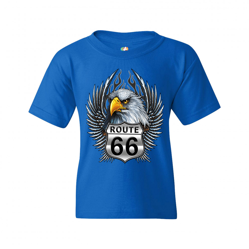 BALD EAGLE ROUTE 66 ROAD SIGN youth t-shirt live to ride born to be wild kids royal blue