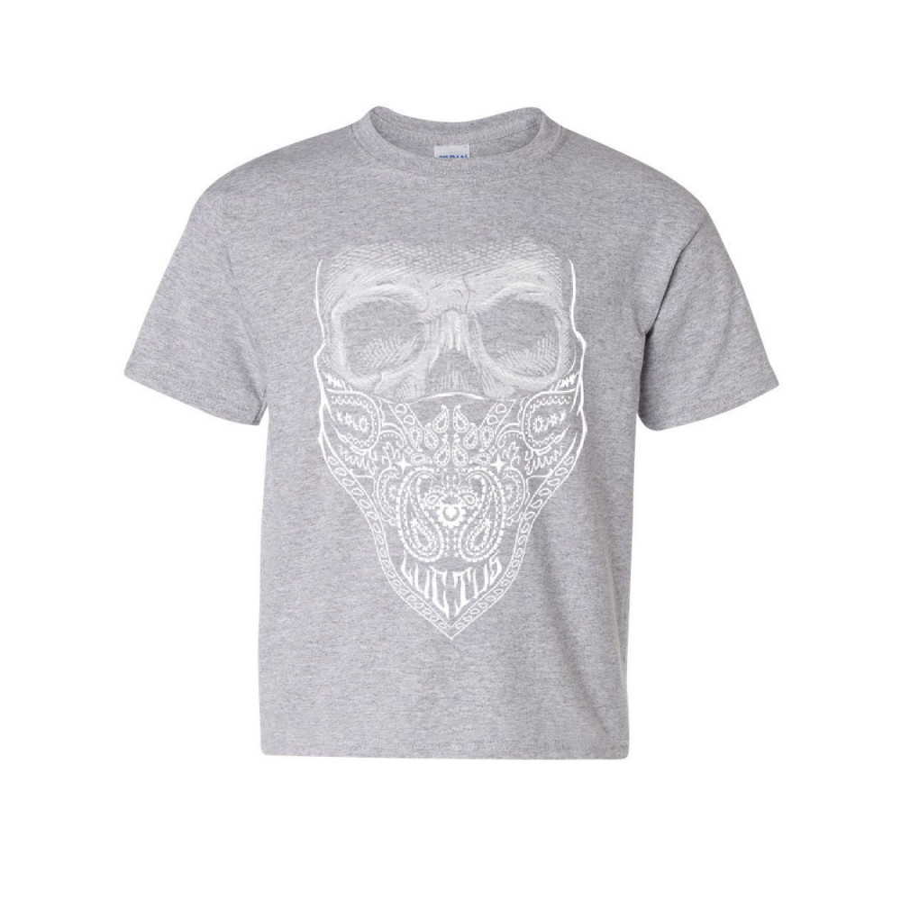 BANDANA SKULL youth t-shirt badass gangsta swag dead kids tee gray