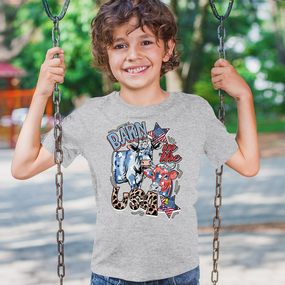 Celebrate American farming and patriotic spirit with our playful "Barn in the USA" design, a blend of whimsy and pride.
