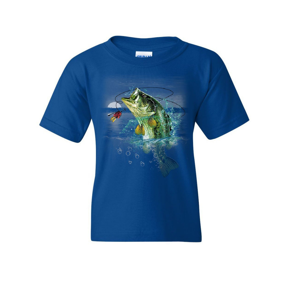 BASS FISHING youth t-shirt fisherman camping hobby angler lake river kids tee royal blue