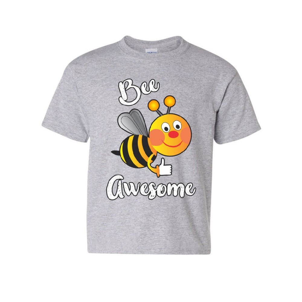 BEE AWESOME youth t-shirt motivational funny cute honey bee be awesome kids tee gray