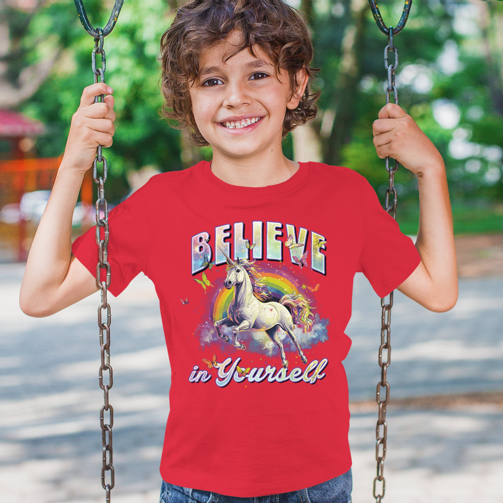 Bring fairytale magic into your everyday life with this Believe in Yourself unicorn rainbow design. Featuring whimsical unicorn shirt details, fantasy rainbow shirt colors, and enchanted unicorn shirt sparkle, it inspires positivity and confidence. A magical rainbow unicorn and galaxy unicorn shirt full of charm, sparkle unicorn shirt vibes, and uplifting energy for all dreamers.