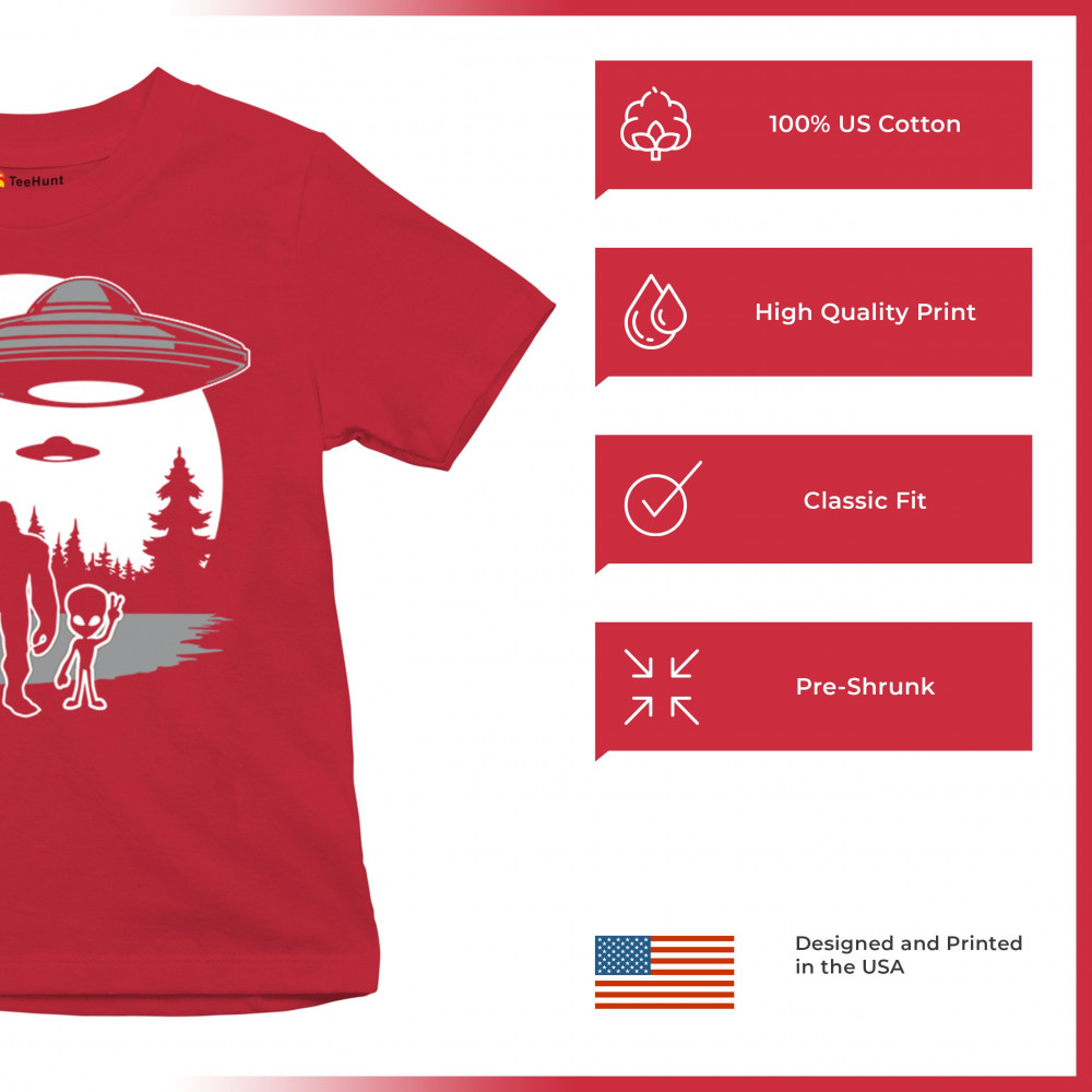 Explore the universe's mysteries with our design where aliens, Big Foot, and Area 51 lore merge for the ultimate nerd homage.