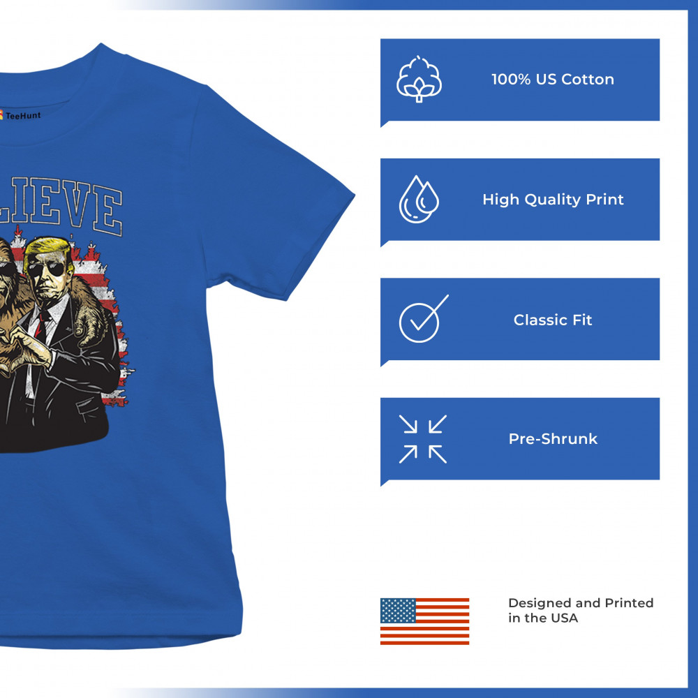 Show your belief with Trump and Bigfoot! Celebrate America First, the Red Wave, and conservative pride with this unique and patriotic design.