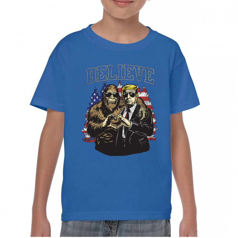 The "Believe" design combines patriotic pride and conservative values with a touch of fun. Featuring Donald J. Trump and a loyal Bigfoot against the American flag, this graphic is perfect for Trump supporters, Republicans, and believers in America First. Celebrate the Red Wave, the 47th President, and the unstoppable fight for victory. Ideal for anyone with unwavering belief in the people's mandate.