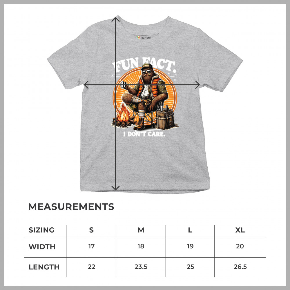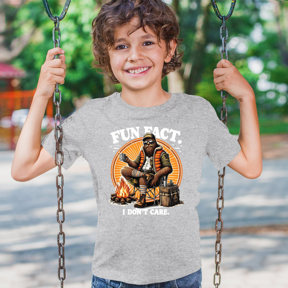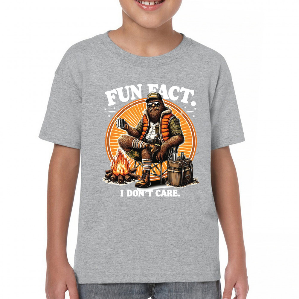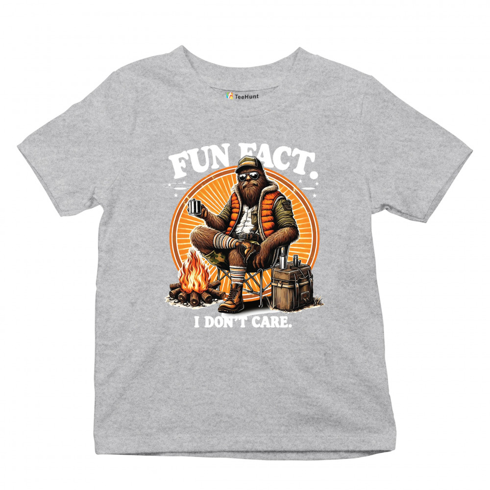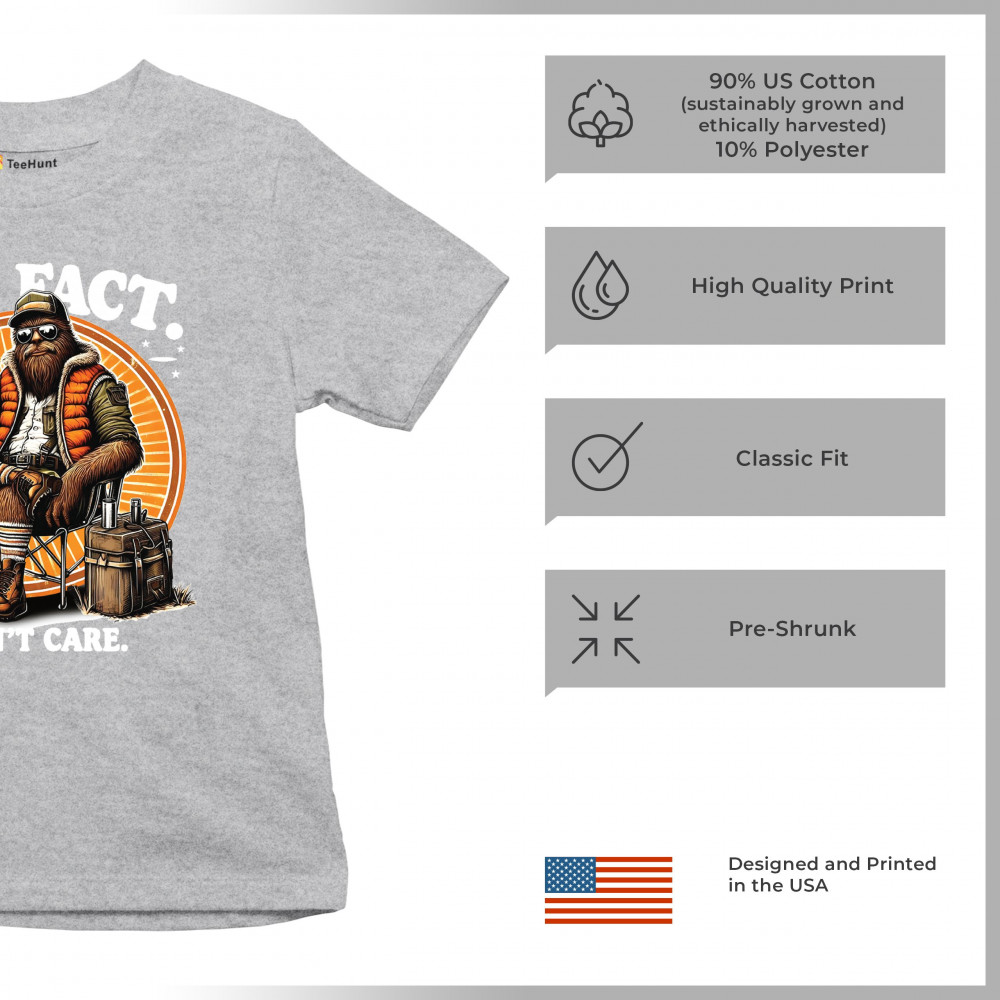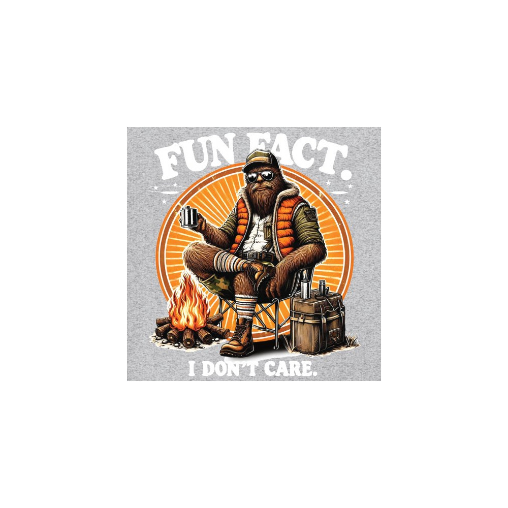 Funny Bigfoot Fun Fact design with cryptid humor, sarcastic outdoors shirt vibe, retro Sasquatch saying, USA pride, and camping adventure style.