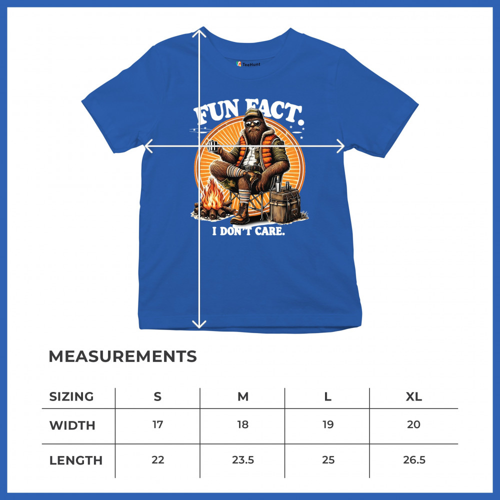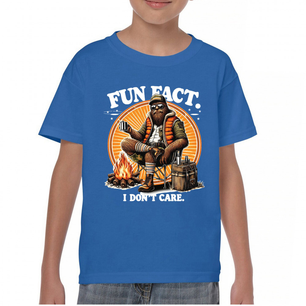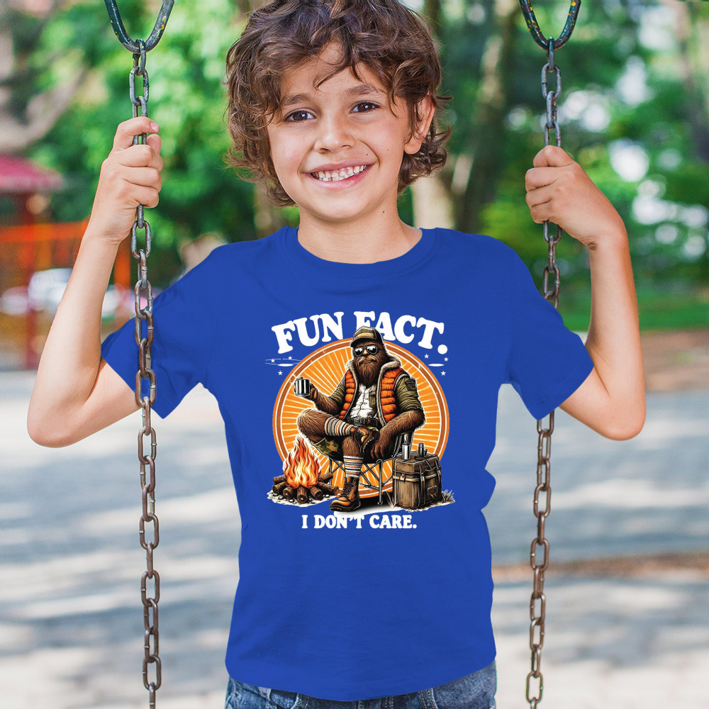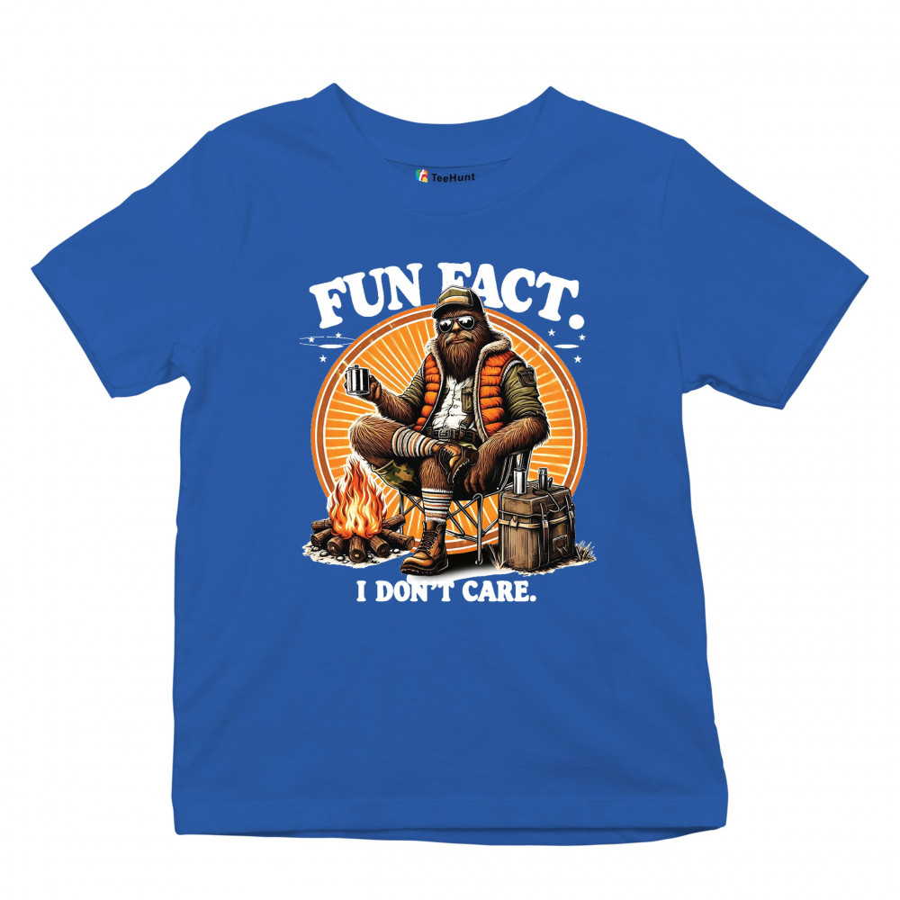 Funny Bigfoot Fun Fact design with cryptid humor, sarcastic outdoors shirt vibe, retro Sasquatch saying, USA pride, and camping adventure style.