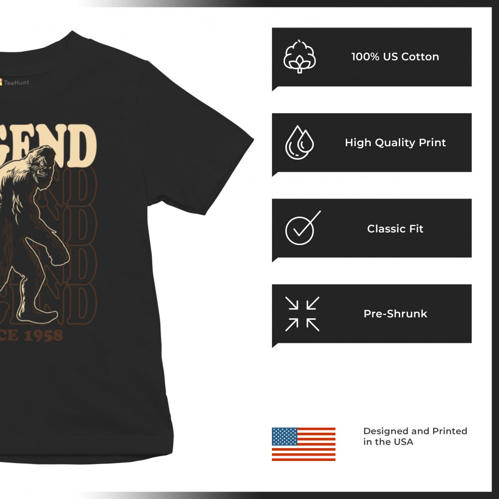 Celebrate the legend of Bigfoot since 1958 with this unique design. Perfect for fans of cryptozoology and mythical creatures.