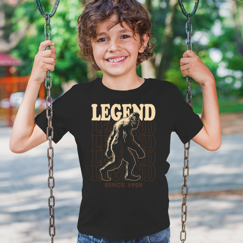 BIGFOOT LEGEND SINCE 1958 youth t-shirt funny vintage classic sasquatch kids black
