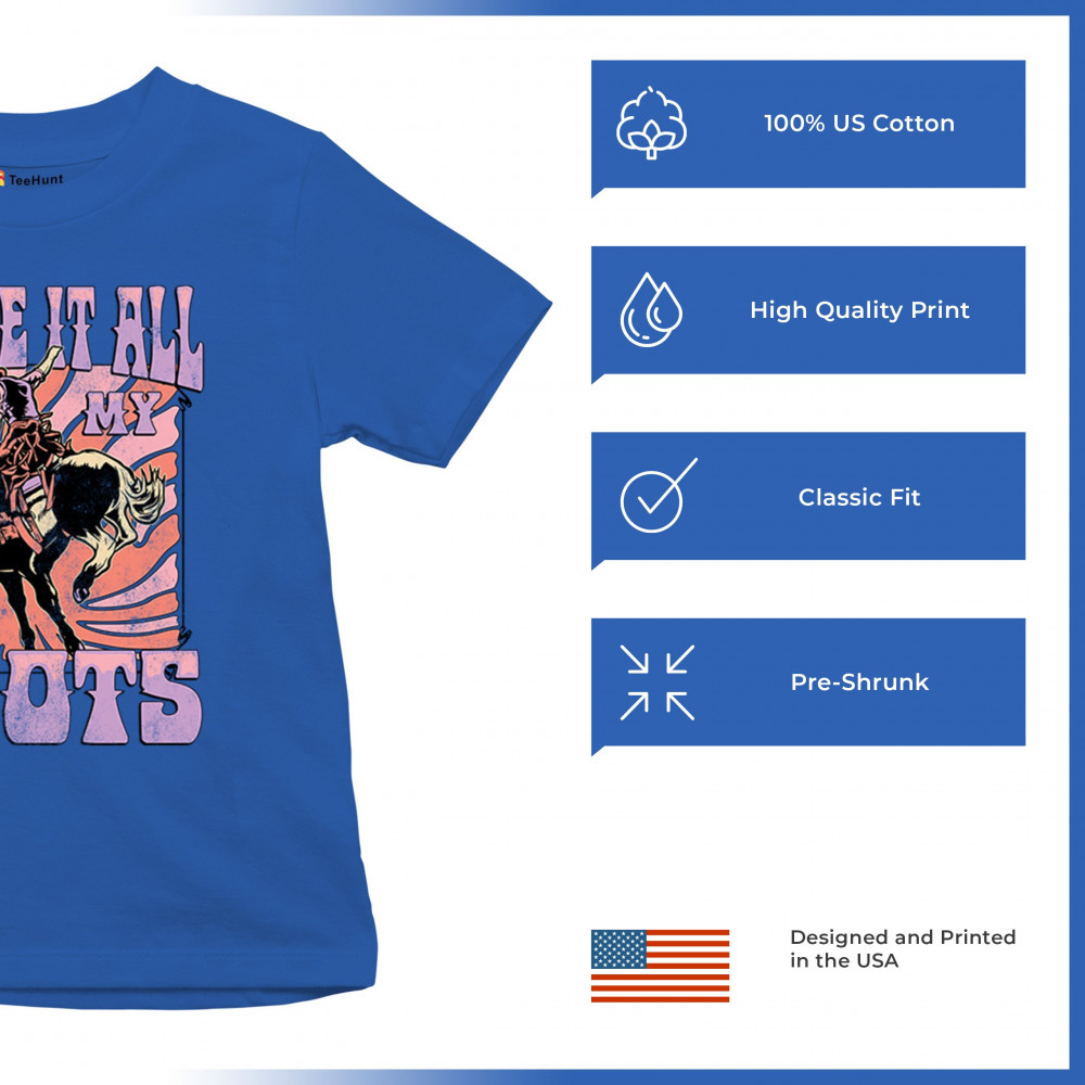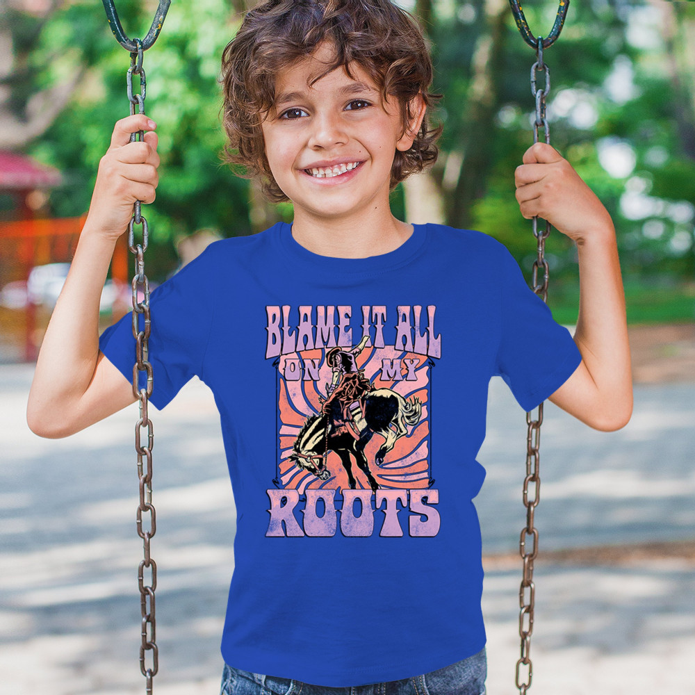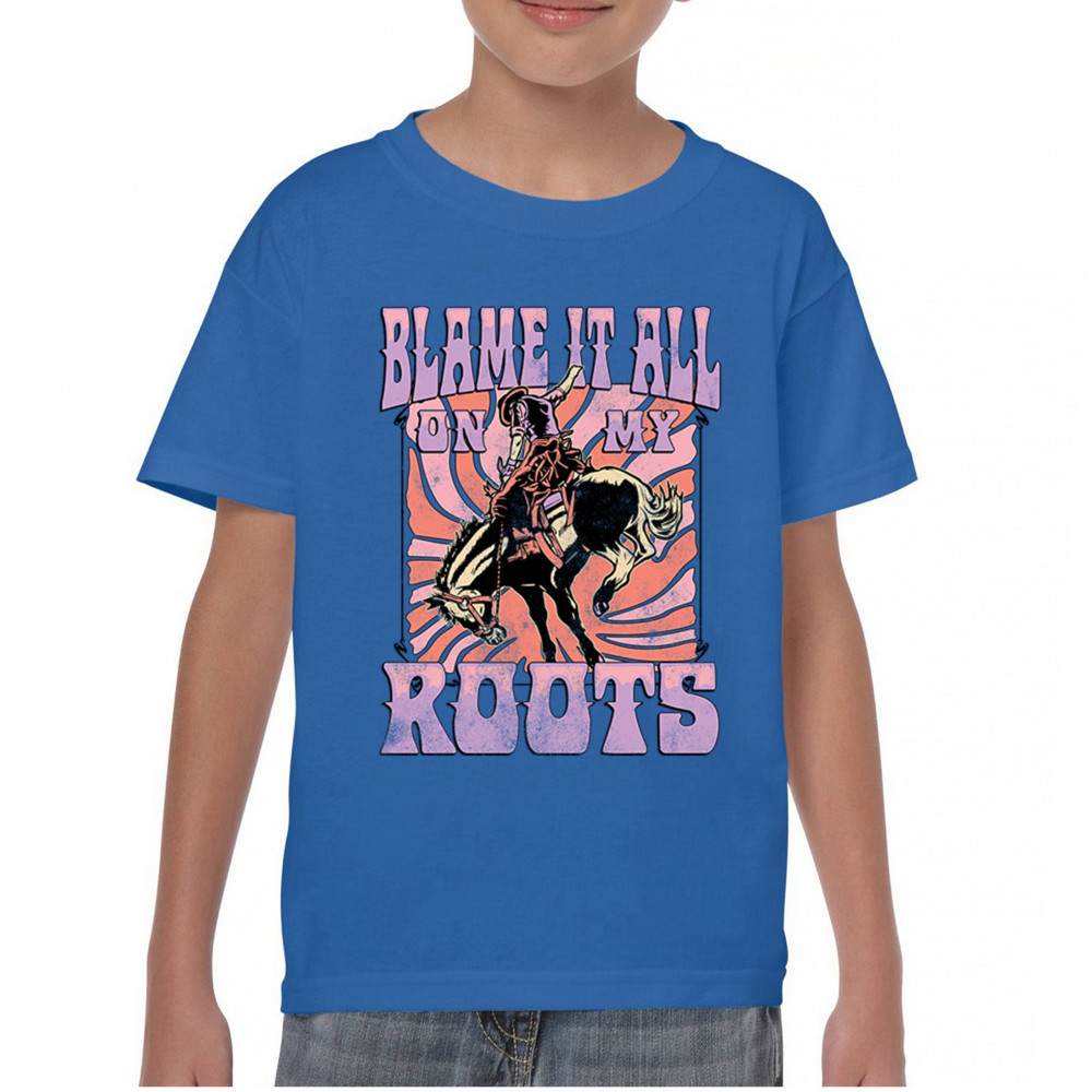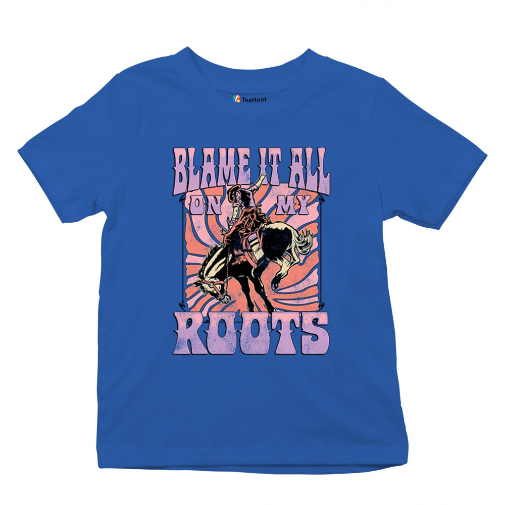 Blame It All On My Roots is vintage country style with rodeo spirit, perfect for small town life, barn dances, and wild country pride.