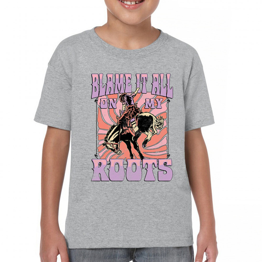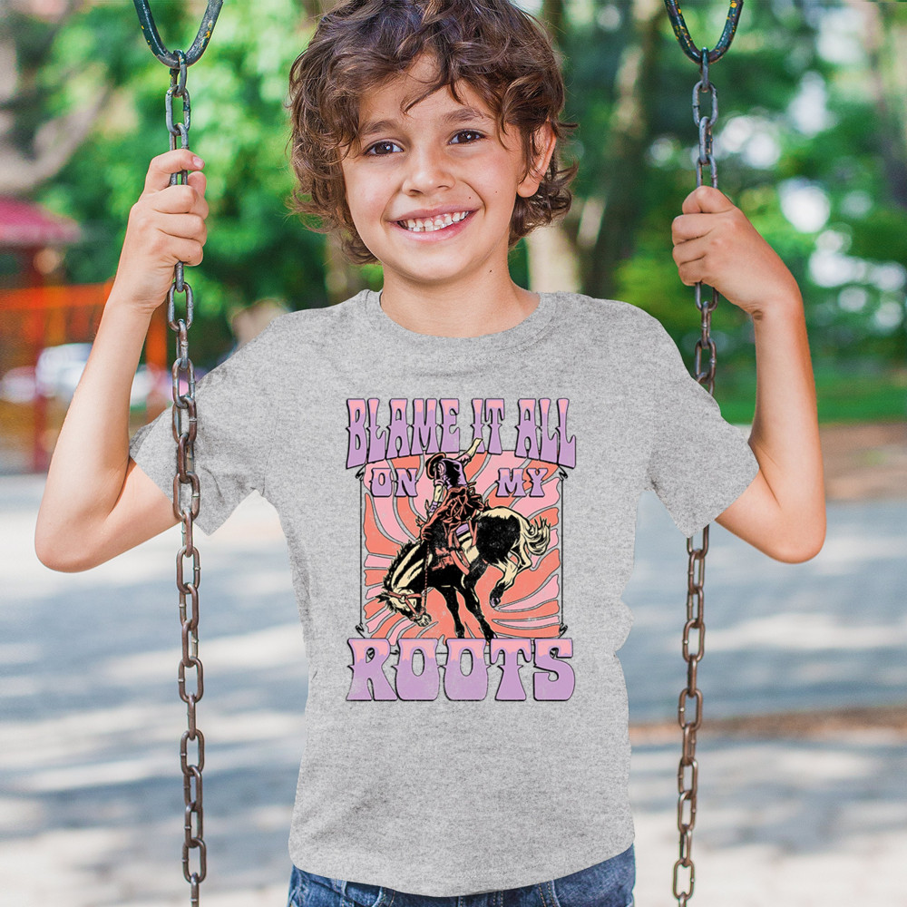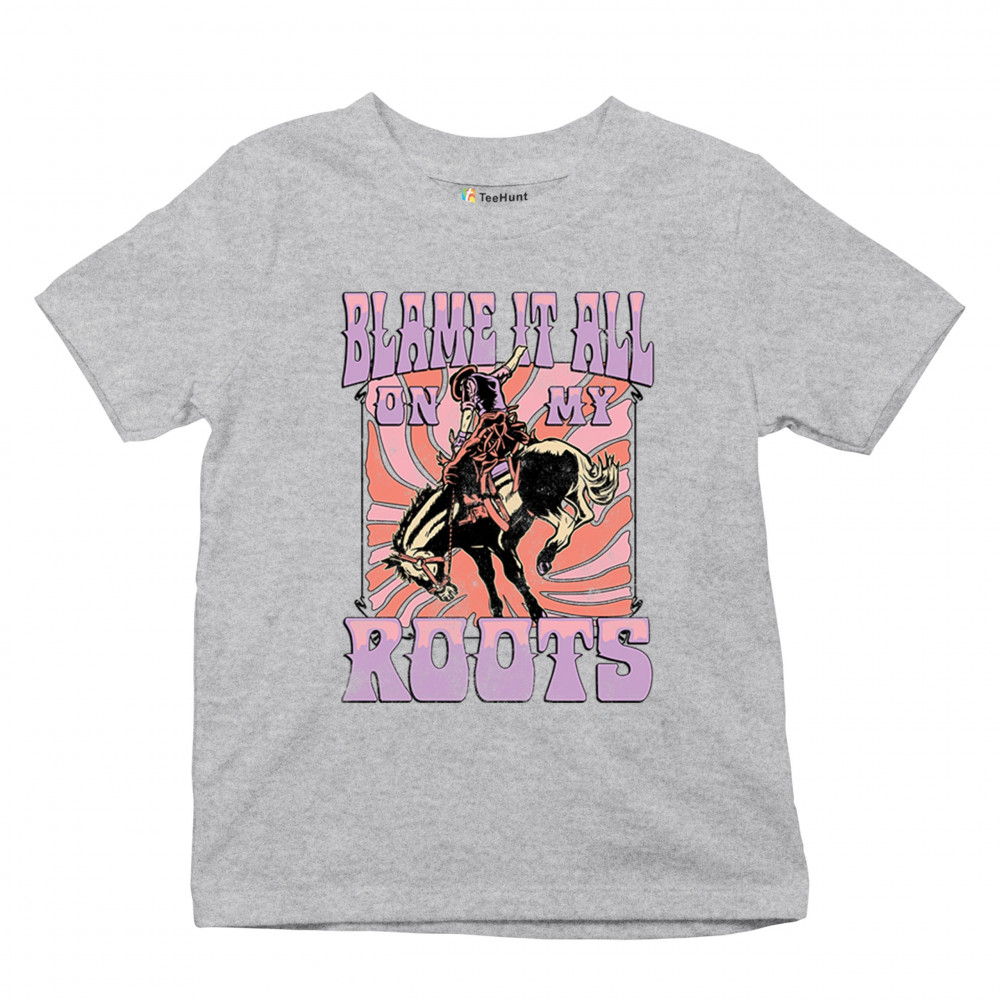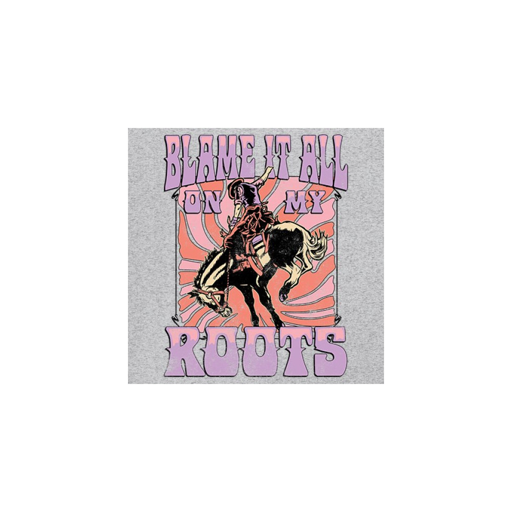 Blame It All On My Roots is vintage country style with rodeo spirit, perfect for small town life, barn dances, and wild country pride.
