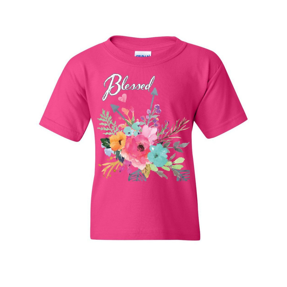 BLESSED youth t-shirt love faith hope believer motivation kindness kids tee pink