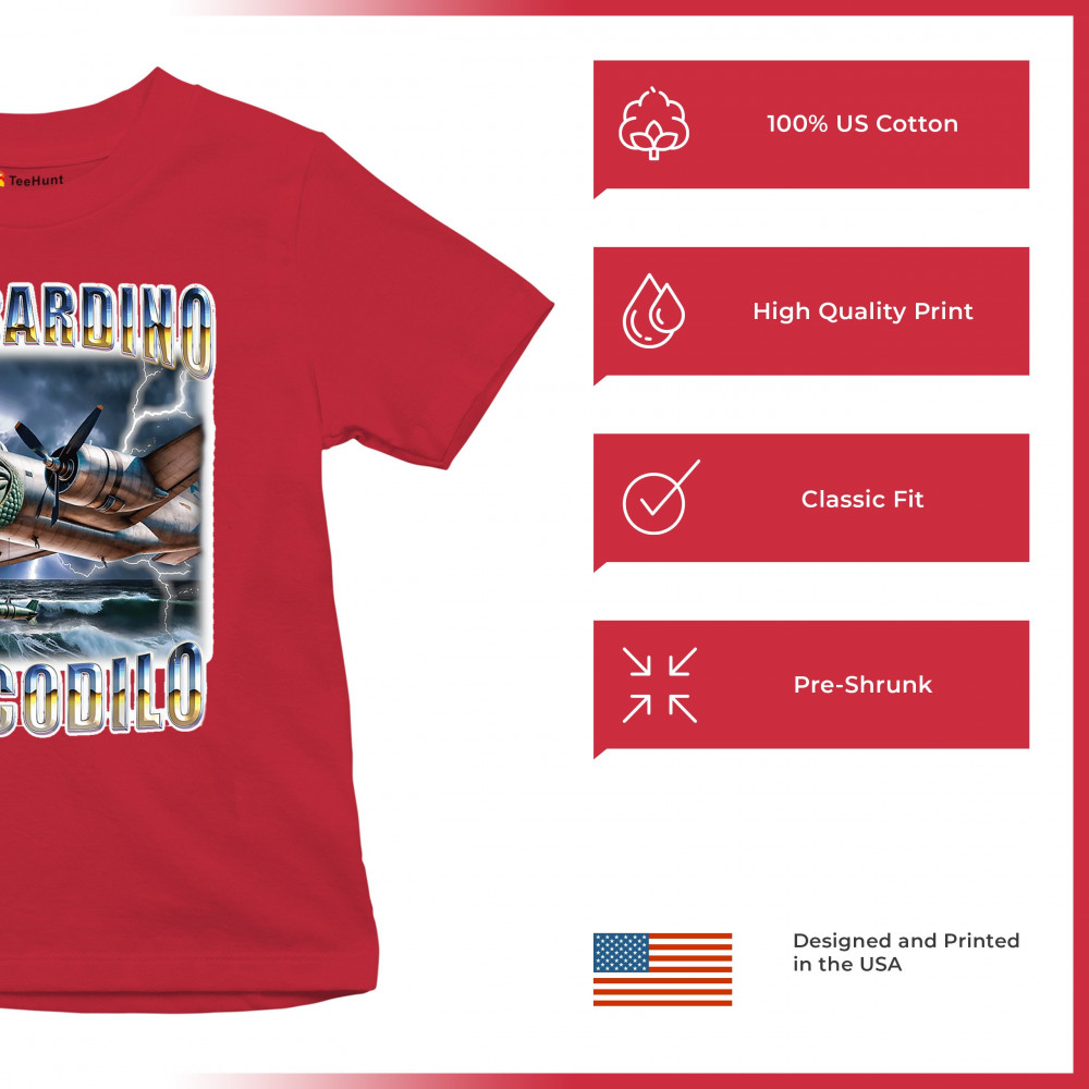 Bombardino Crocodilo is meme fashion with teeth. Featuring a crocodile-faced bomber jet flying through internet chaos, this Italian Brainrot masterpiece blends weirdcore visuals, cursed meme logic, and Gen Z humor. Perfect for fans of surreal fashion, viral absurdity, and TikTok-driven ironic style.