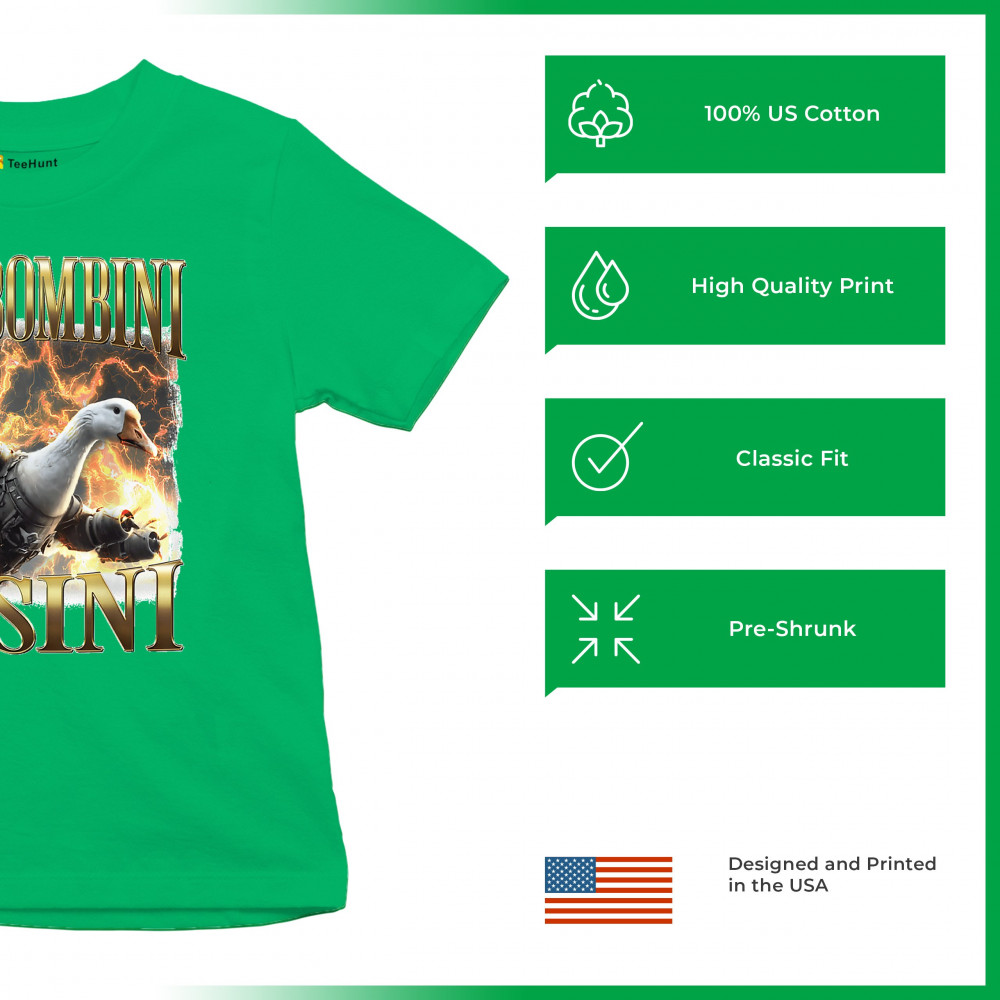 Bombombini Gusini is meme chaos at Mach speed. Featuring a mechanized goose powered by pure Italian Brainrot energy, this design blends cursed-core humor, Gen Z absurdity, ironic fashion, and weirdcore visuals. Perfect for animal meme fans, TikTok-core addicts, and anyone whose humor is completely unhinged.