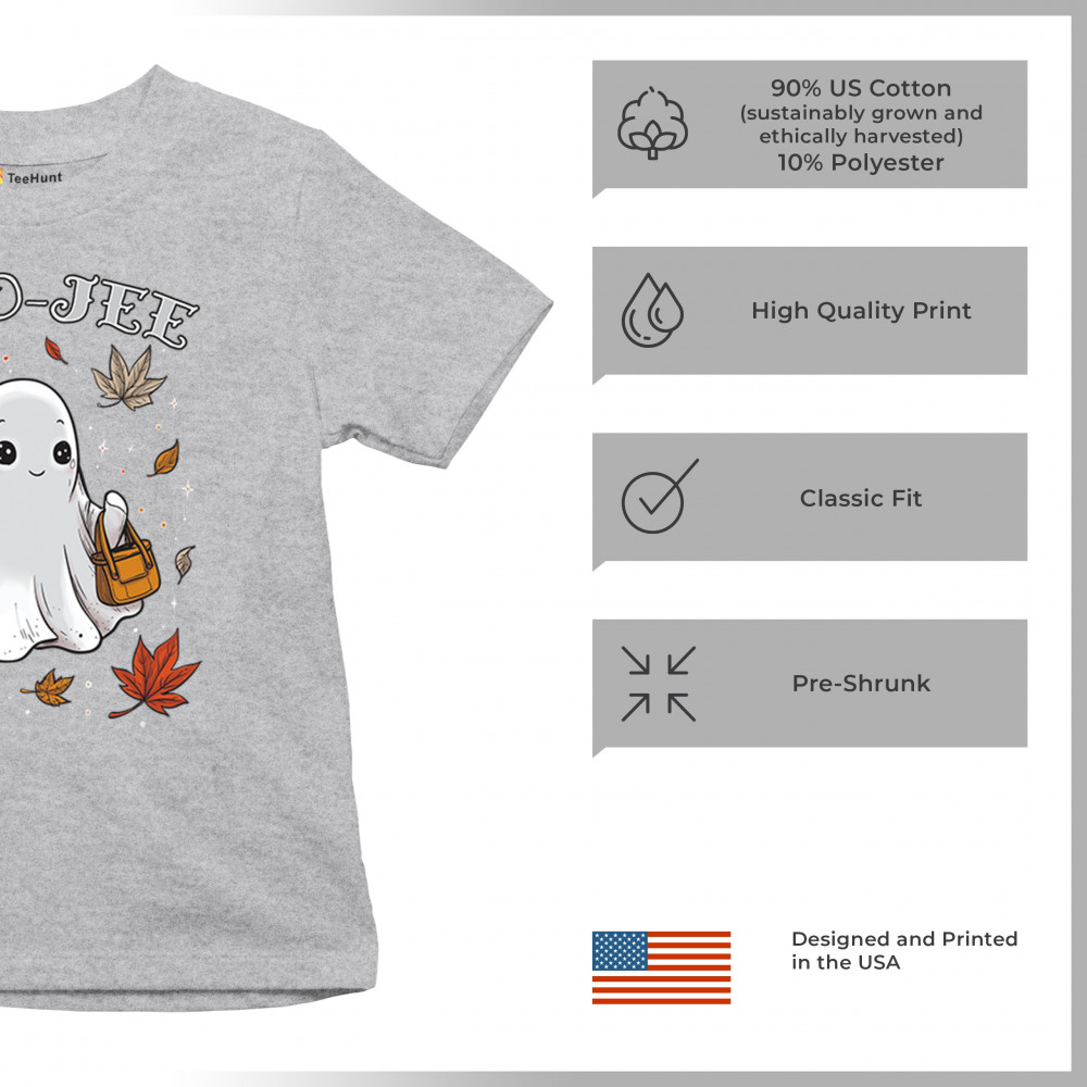 Get in the Halloween spirit with this playful Boo-Jee cute ghost design featuring a funny pumpkin head, cozy candy bucket, and spooky-scary charm. Great for trick or treat fun, haunted house parties, autumn leaves strolls, or sipping coffee on a crisp fall night, this shirt blends festive vibes with seasonal style. Perfect for anyone who loves Halloween fun and cozy fall flair.