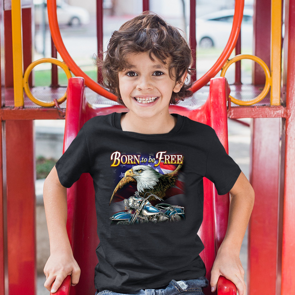 BORN TO BE FREE youth t-shirt american bald eagle chopper biker patriotic kids black