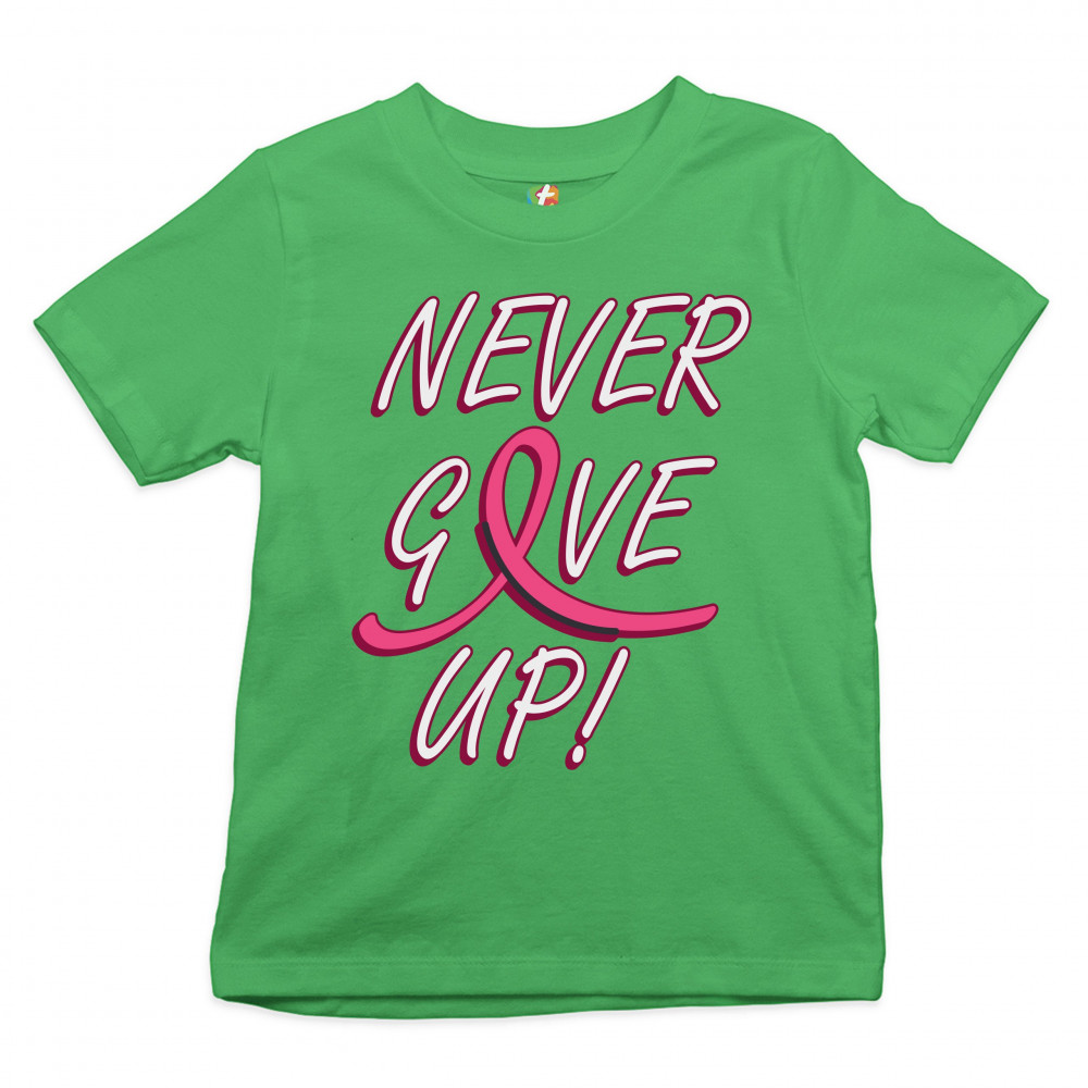 BREAST CANCER AWARENESS NEVER GIVE UP youth t-shirt pink ribbon kids green