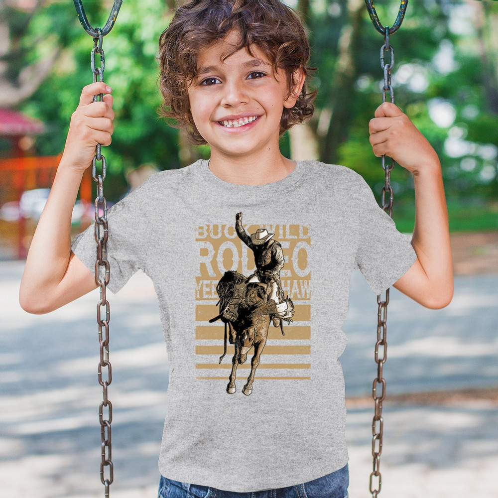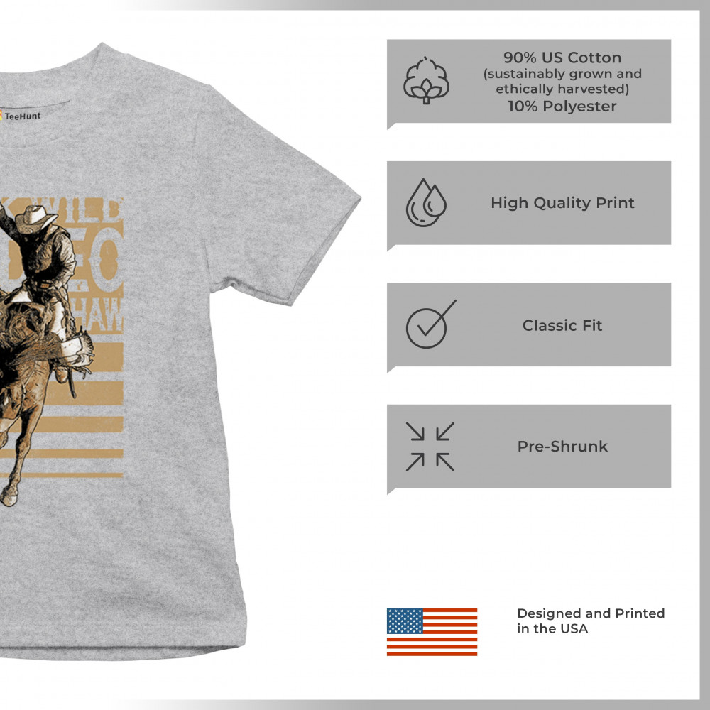 Rodeo bronc rider design with cowboy grit. Western graphic for fans of ranch life, bucking broncos, and rodeo events.