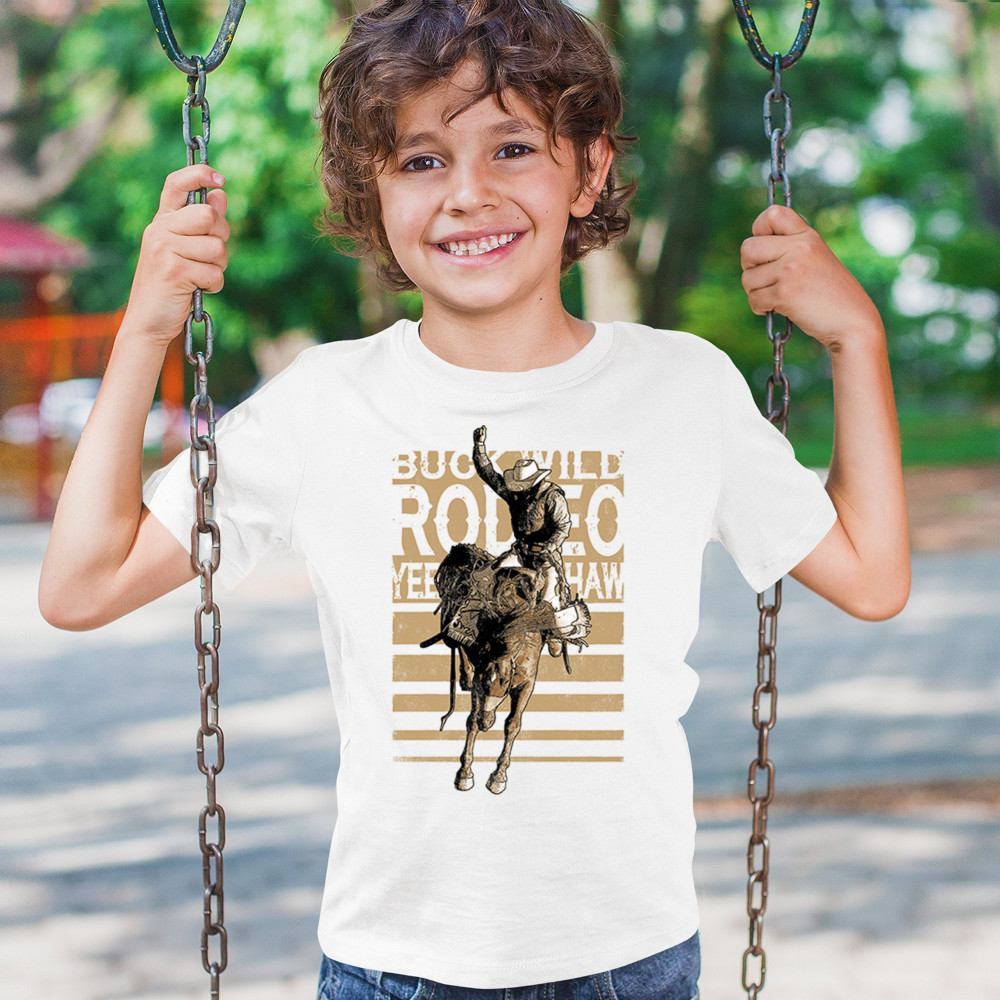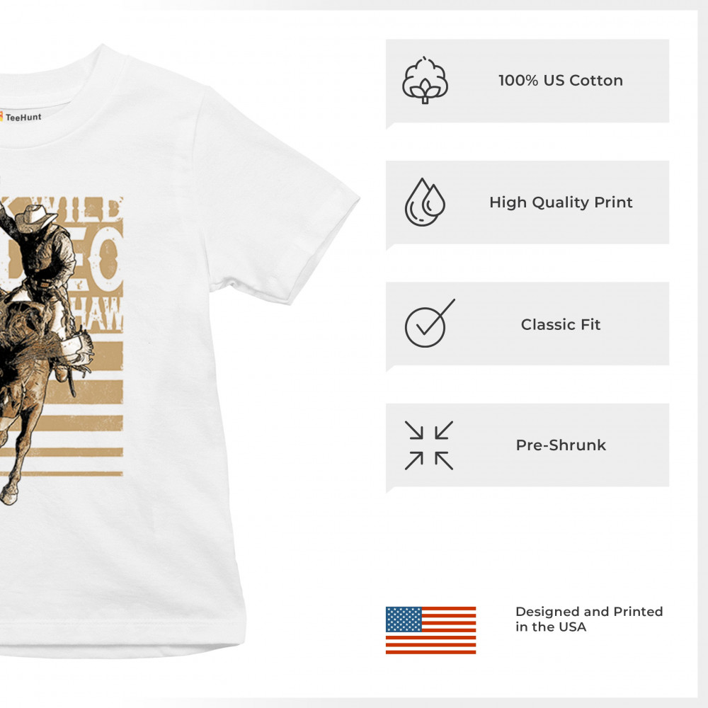 Rodeo bronc rider design with cowboy grit. Western graphic for fans of ranch life, bucking broncos, and rodeo events.