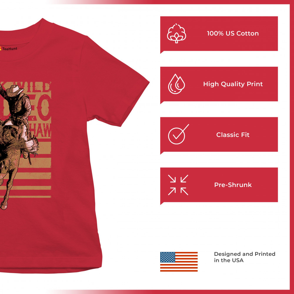 Rodeo bronc rider design with cowboy grit. Western graphic for fans of ranch life, bucking broncos, and rodeo events.