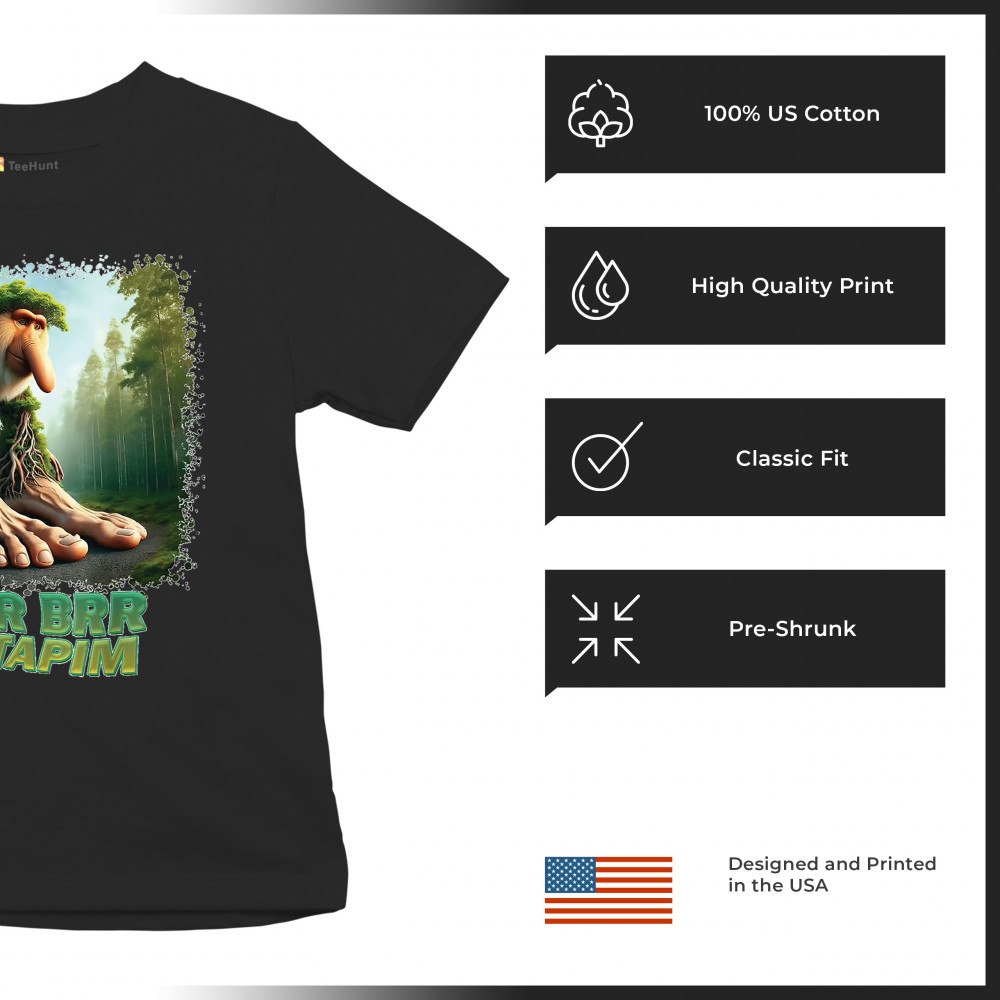 Brr Brr Patapim is forest-core gone full brainrot. Featuring a massive-footed tree-beast with cryptid energy, this design blends cursed meme culture, TikTok humor, weirdcore visuals, and surreal Gen Z fashion. It’s ideal for fans of absurd monster mashups and internet chaos fits.