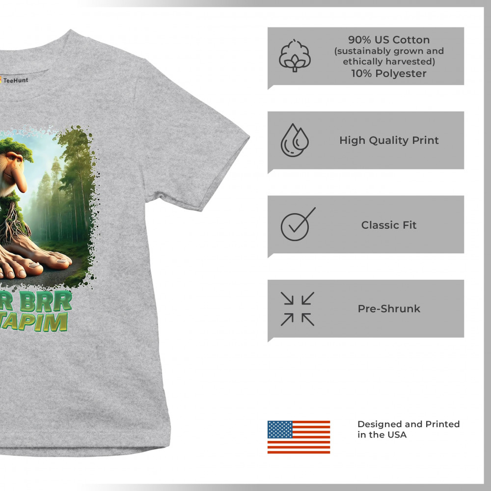 Brr Brr Patapim is forest-core gone full brainrot. Featuring a massive-footed tree-beast with cryptid energy, this design blends cursed meme culture, TikTok humor, weirdcore visuals, and surreal Gen Z fashion. It’s ideal for fans of absurd monster mashups and internet chaos fits.