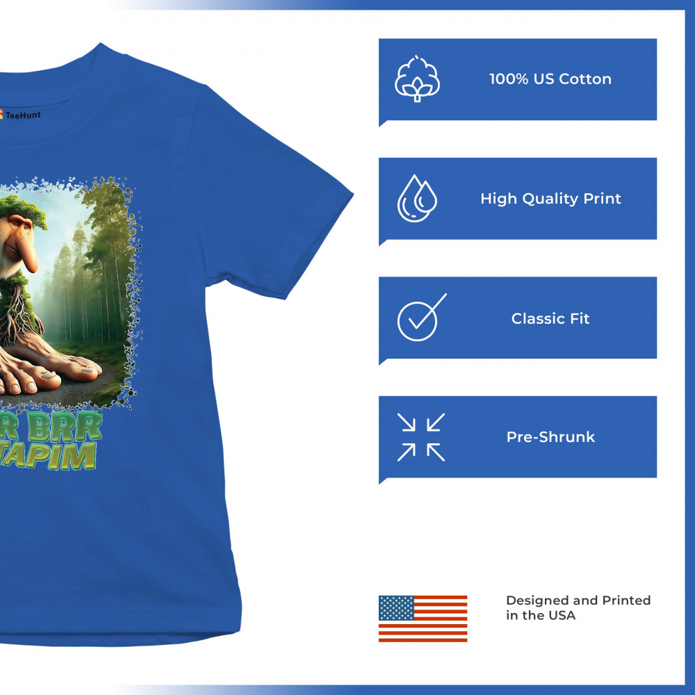 Brr Brr Patapim is forest-core gone full brainrot. Featuring a massive-footed tree-beast with cryptid energy, this design blends cursed meme culture, TikTok humor, weirdcore visuals, and surreal Gen Z fashion. It’s ideal for fans of absurd monster mashups and internet chaos fits.