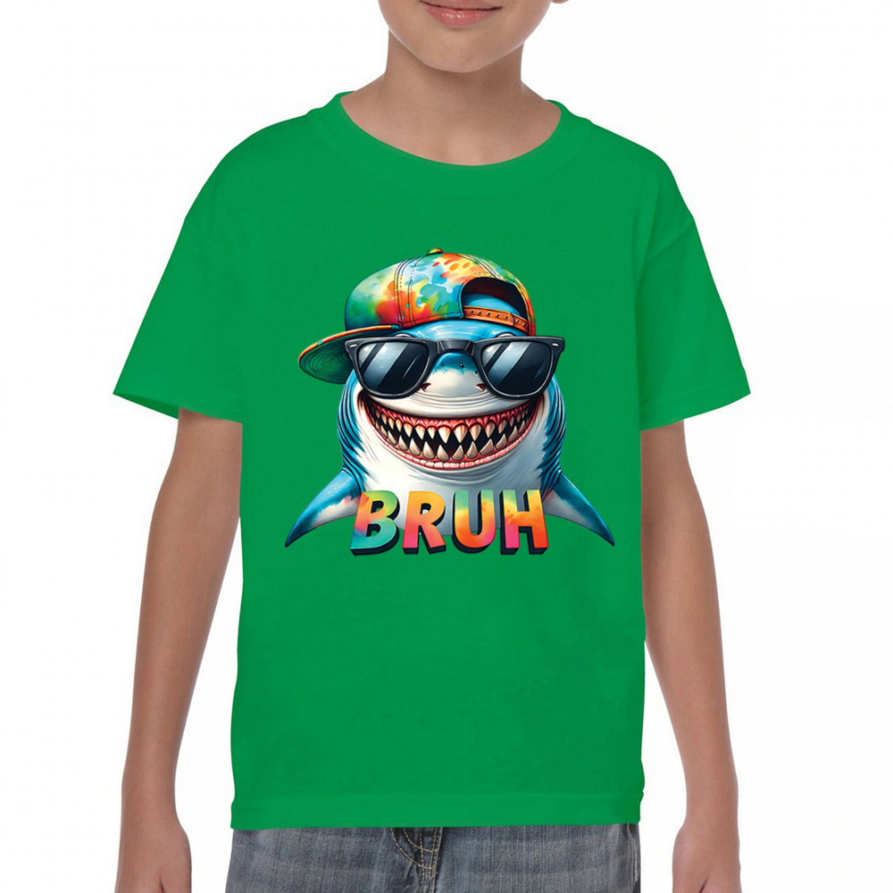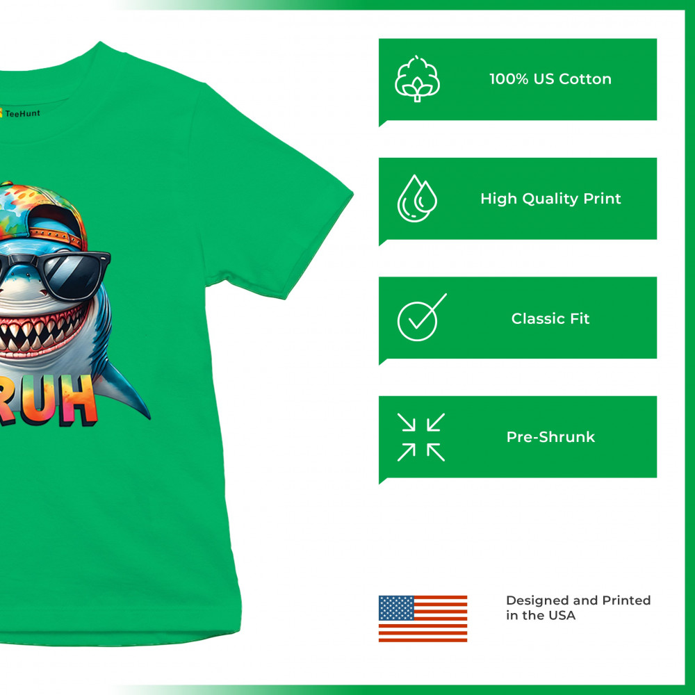 Bruh Shark meme shirt with Gen Z humor, cartoon shark design, summer beach vibes, Sigma Aura, and Italian Brainrot internet humor.