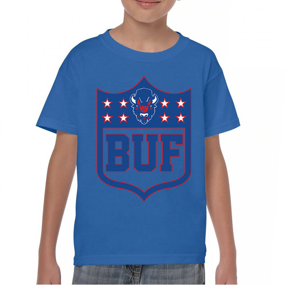 Bold Buffalo bison shield design for game day gear, tailgating, Sunday football, and championship pride in The Queen City.