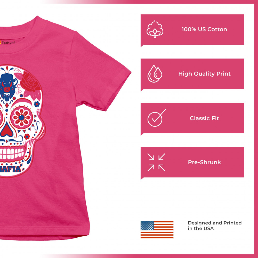 Celebrate Buffalo football with this Sugar Skull design inspired by Dia de los Muertos. Featuring NY Bleed Blue toughness, Northern Grit, and Queen City spirit, it’s made for tailgate parties, playoff energy, and fantasy football rivalries. A bold calavera for true Buffalo fans who live Game Day pride.