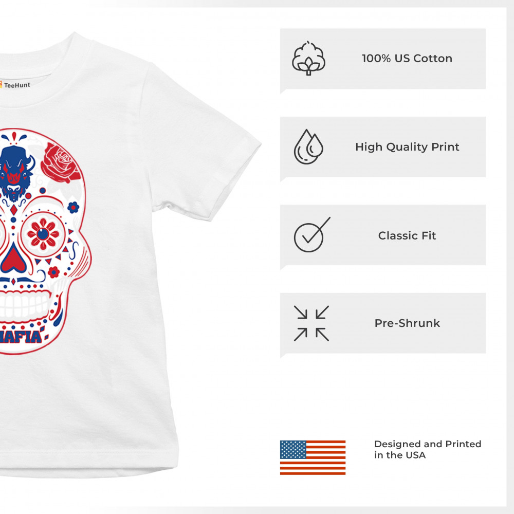 Celebrate Buffalo football with this Sugar Skull design inspired by Dia de los Muertos. Featuring NY Bleed Blue toughness, Northern Grit, and Queen City spirit, it’s made for tailgate parties, playoff energy, and fantasy football rivalries. A bold calavera for true Buffalo fans who live Game Day pride.