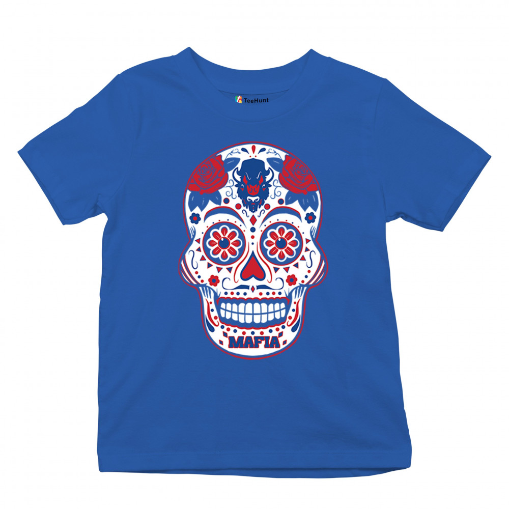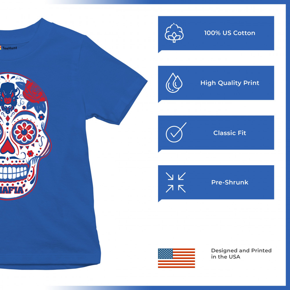 Celebrate Buffalo football with this Sugar Skull design inspired by Dia de los Muertos. Featuring NY Bleed Blue toughness, Northern Grit, and Queen City spirit, it’s made for tailgate parties, playoff energy, and fantasy football rivalries. A bold calavera for true Buffalo fans who live Game Day pride.
