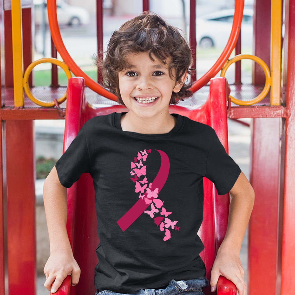 BUTTERFLIES PINK RIBBON youth t-shirt breast cancer awareness hope kids black