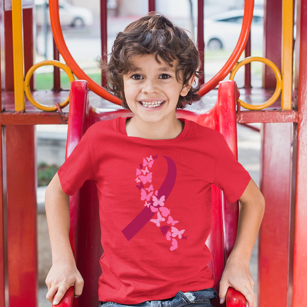 BUTTERFLIES PINK RIBBON youth t-shirt breast cancer awareness hope kids red