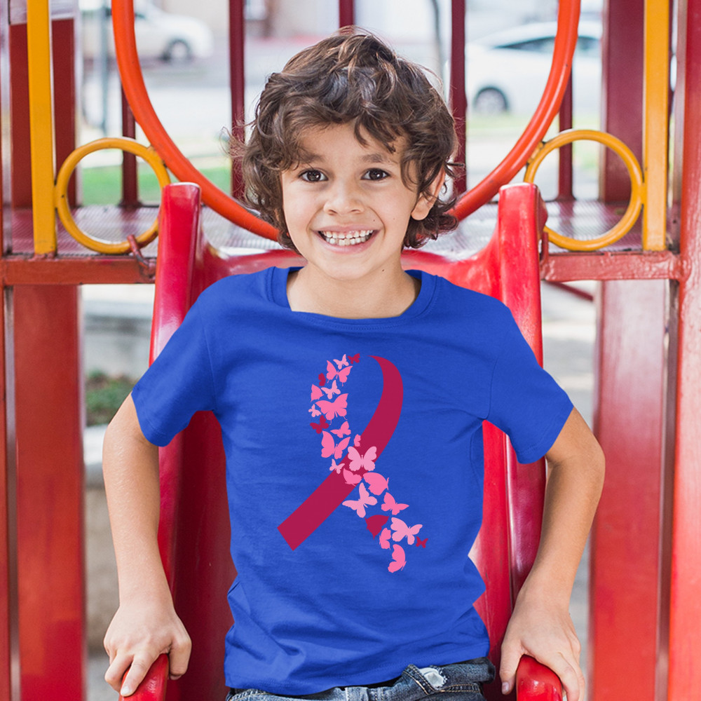 BUTTERFLIES PINK RIBBON youth t-shirt breast cancer awareness hope kids royal blue