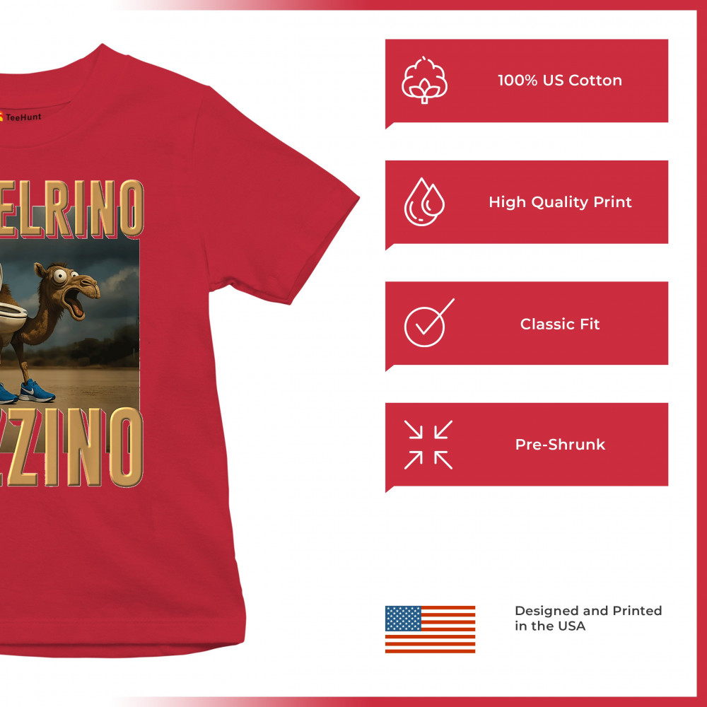 Camelrino Tazzino delivers a double flush of internet madness. With a toilet body, running shoes, and a camel's face frozen in horror, this meme mashup blends cursed-core design, viral TikTok humor, surreal animal chaos, and Gen Z meme fashion. Built for weirdcore lovers and internet irony addicts.