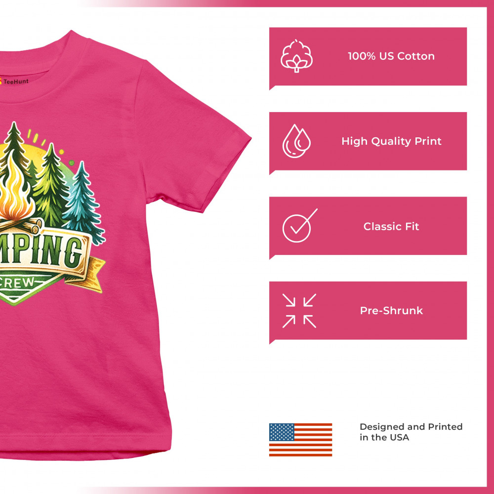 Camping Crew is made for trail lovers, glamping fans, and outdoorsmen who thrive in nature. Celebrate camping adventures, campfire moments, and wilderness vibes with this fun, cozy design. Perfect for family trips, forest escapes, and national park exploration in any season.
