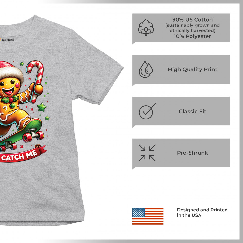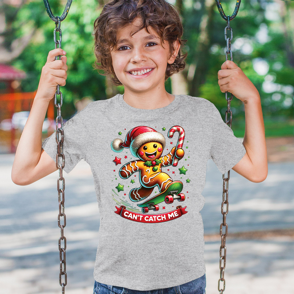 A fun Christmas design featuring a gingerbread character on a skateboard, candy cane in hand, and bright festive colors. Perfect for holiday party outfits, family gatherings, Christmas photos, festive humor fans, stocking stuffer gifting, winter celebrations, and anyone who loves playful seasonal graphics with cheerful personality.