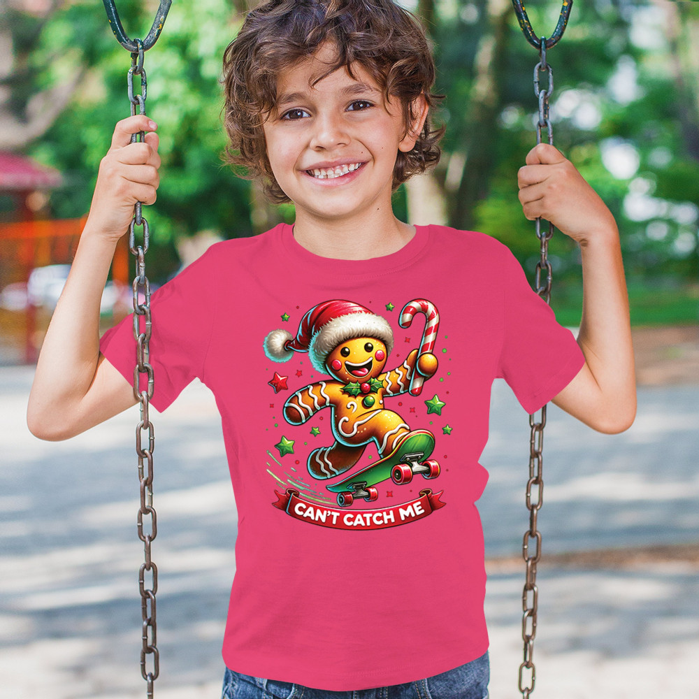 A fun Christmas design featuring a gingerbread character on a skateboard, candy cane in hand, and bright festive colors. Perfect for holiday party outfits, family gatherings, Christmas photos, festive humor fans, stocking stuffer gifting, winter celebrations, and anyone who loves playful seasonal graphics with cheerful personality.