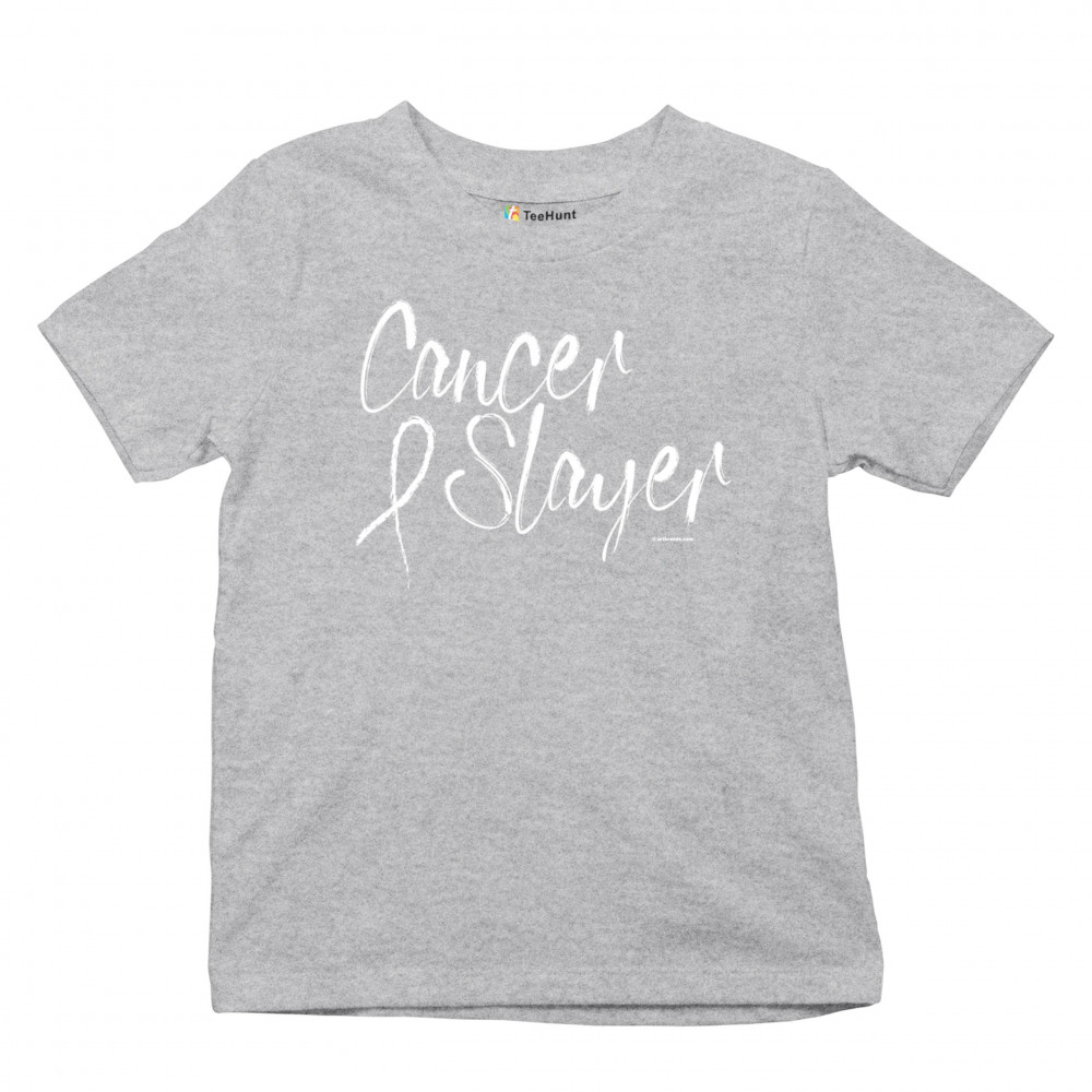 CANCER SLAYER youth t-shirt breast cancer awareness ribbon hope healing kids gray