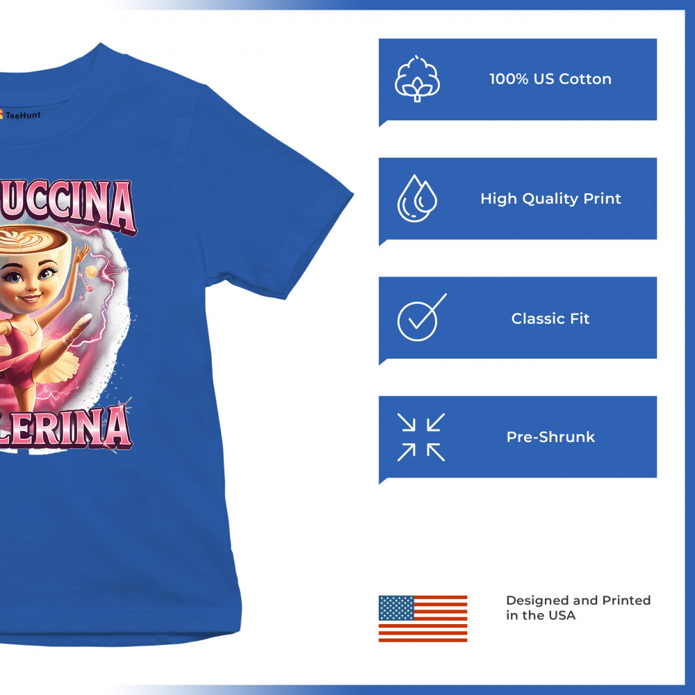 Cappuccina Ballerina is your perfect mix of meme chaos and coffee-core fashion. This absurd design features a ballet-dancing cappuccino head with weirdcore flair and Gen Z humor. A surreal blend of ironic internet fashion, TikTok trends, and espresso madness—ideal for meme lovers, caffeine addicts, and viral absurdists alike.