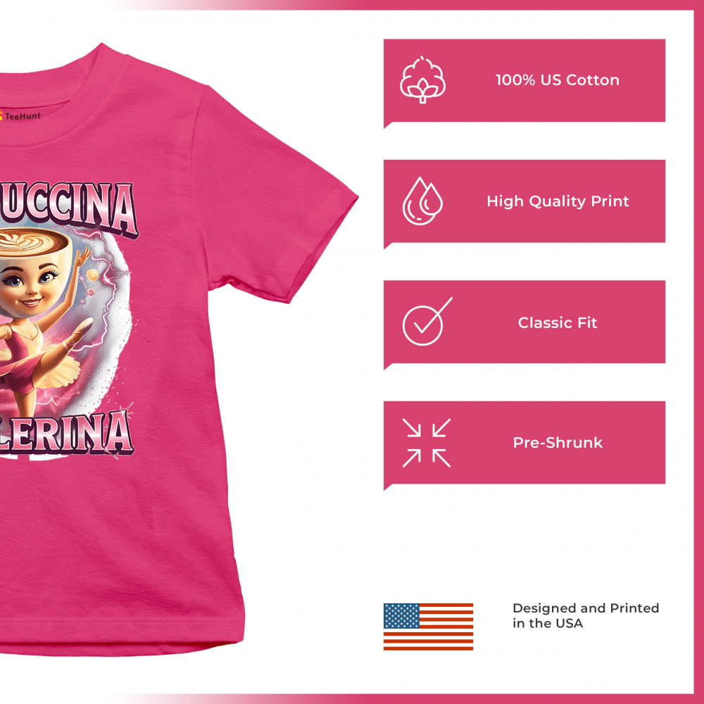 Cappuccina Ballerina is your perfect mix of meme chaos and coffee-core fashion. This absurd design features a ballet-dancing cappuccino head with weirdcore flair and Gen Z humor. A surreal blend of ironic internet fashion, TikTok trends, and espresso madness—ideal for meme lovers, caffeine addicts, and viral absurdists alike.