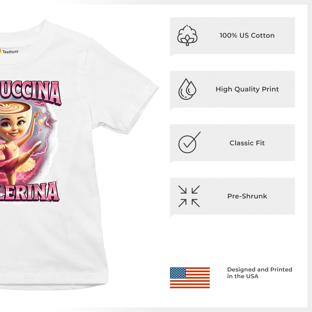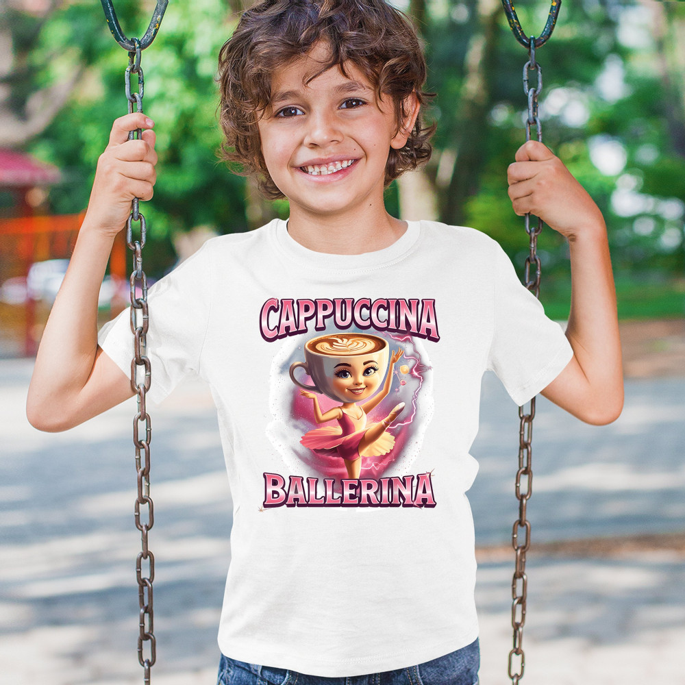 Cappuccina Ballerina is your perfect mix of meme chaos and coffee-core fashion. This absurd design features a ballet-dancing cappuccino head with weirdcore flair and Gen Z humor. A surreal blend of ironic internet fashion, TikTok trends, and espresso madness—ideal for meme lovers, caffeine addicts, and viral absurdists alike.