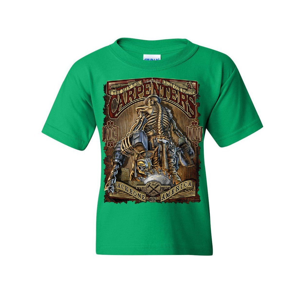CARPENTERS - BACKBONE OF AMERICA carpenters backbone of america youth t-shirt blue collar job craftsman kids tee green